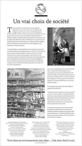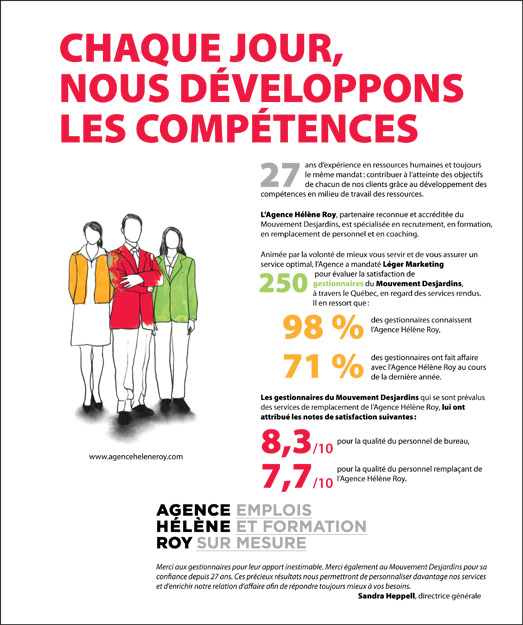 35 ans d'expériences, comme graphiste indépendant, c'est des centaines de clients, des milliers de situations. Ce n'est pas moi qui vous dirai ce qu'il faut dire de votre organisation, mais les aspects que vous voulez mettre de l'avant, je les mettrai en clair dans vos outils de communication.